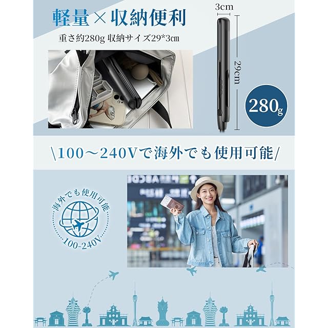 【テクニック要らずツヤ髪を目指せ・初心者でもOK】:独自のヒーター設計と髪ダメージを抑え、スタイリング時の過剰な熱ごもりを逃がしやすく、キューティクルを引き締めてツヤのある美しい髪を目指せるこのストレートヘアアイロンは、210℃でも水が弾けず髪の水分を守れるため、髪表面に水滴がなければ濡れた髪にも使用できます。しっとりとやわらかな仕上がりを目指したい方におすすめ。また、最高230℃まで設定可能で高温すぎるかもしれませんが、髪が太く癖が強い人でも使えますので、とても幅広い髪質に対応できます。高い温度が気になる人はぜひこれを。