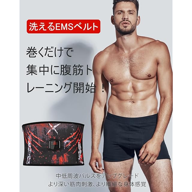 【2025全新モデル 洗えEMS腹筋ベルト】ジェルシート不要 8種類モード 30段階強度 柔らかい軽い生地 USB充電式 液晶表示 腹筋エクササイズ 腹筋トレーニング器具 サイズ調節可能 男女兼用 日本語説明(レッド)
