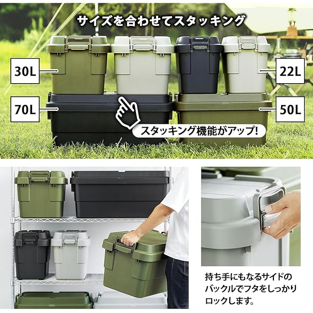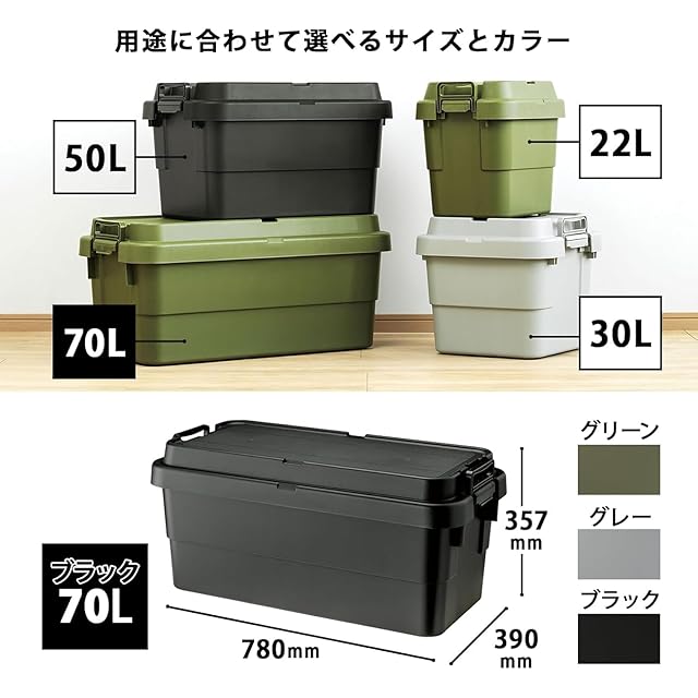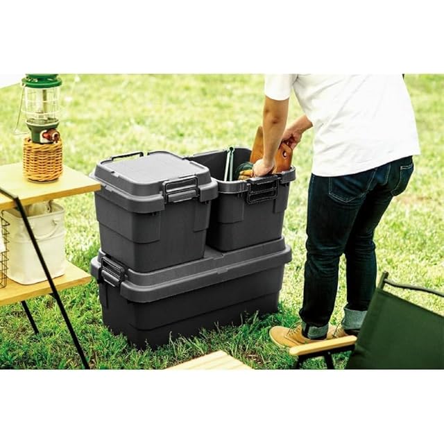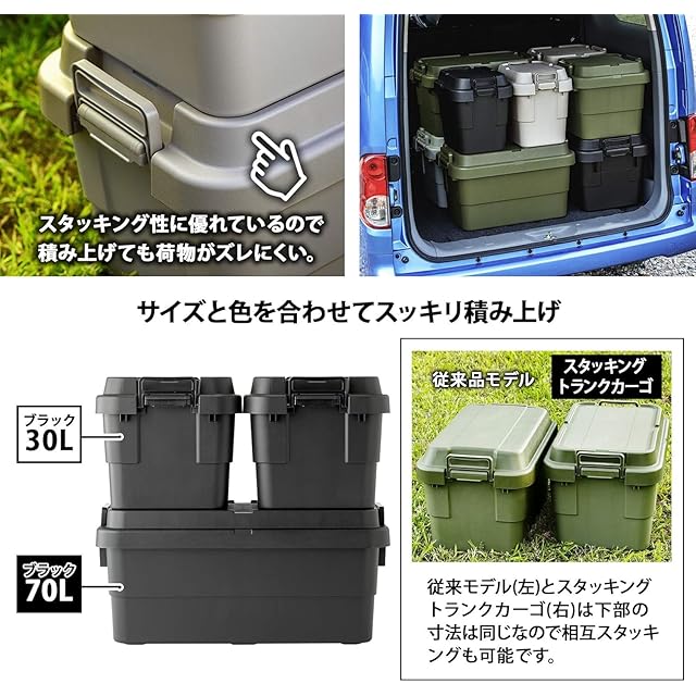 リス(RISU) 収納ボックス スタッキング トランクカーゴ 70L ブラック 日本製 TC-70S コンテナ ボックス 屋外収納 キャンプ 防水 GHON111
