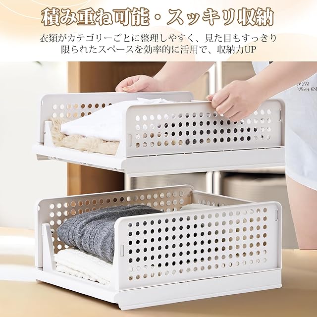 【スッキリ収納】重ねて収納することで、衣類がカテゴリーごとに整理しやすく、見た目もすっきりします。限られたスペースを効率的に活用で、収納力が増して、特にクローゼットや収納棚に最適です。