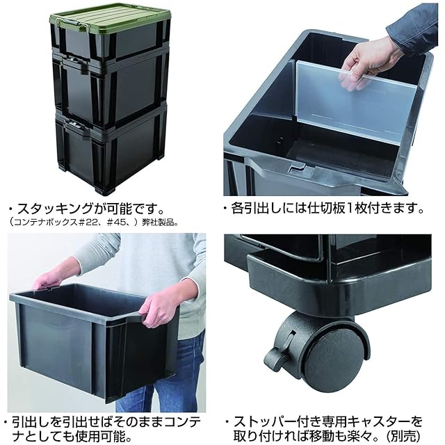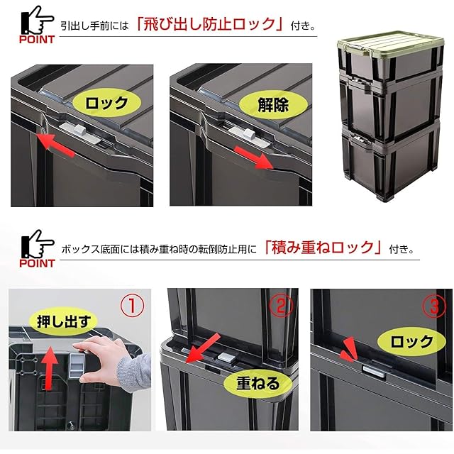 引き出しタイプのコンテナなので、積み重ねてもそのまま取り出し収納可能