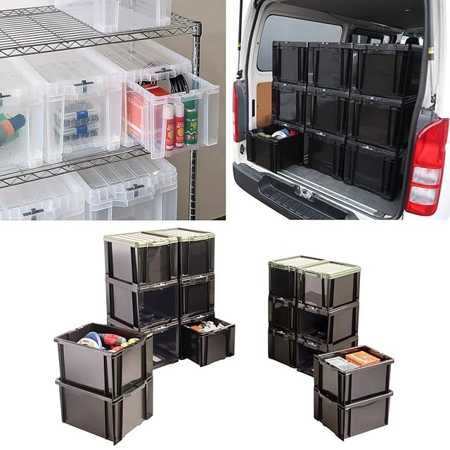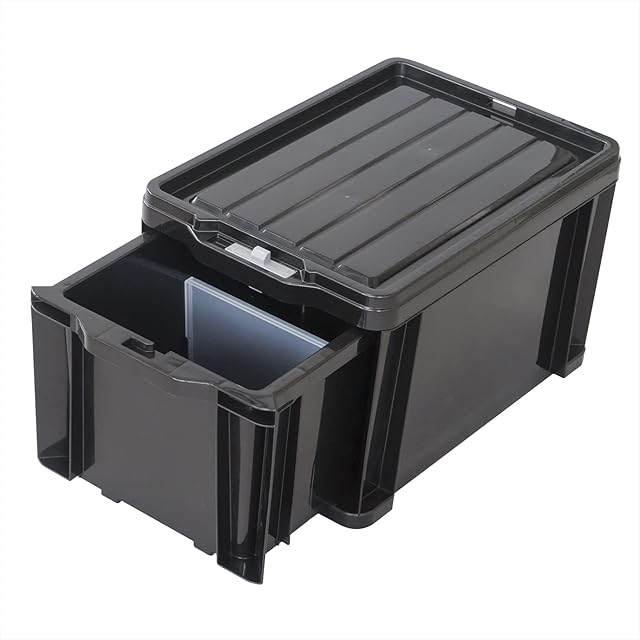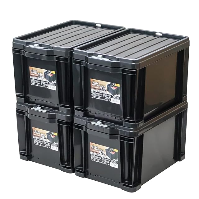 JEJアステージ 収納ボックス ロックストッカー #25 ブラック 幅29×奥行42×高さ26cm 【4個セット】日本製 積み重ね 収納ケース 小物