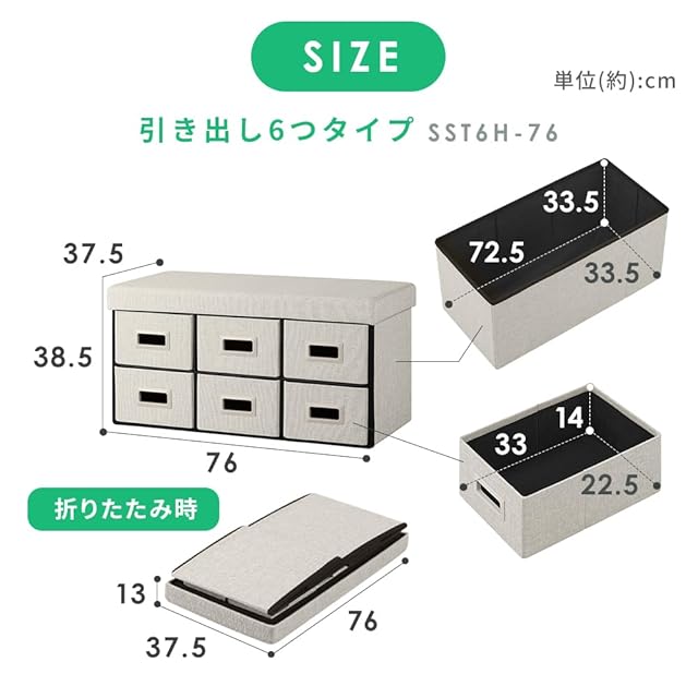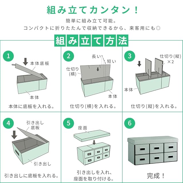 【3WAYで使い方いろいろ!】1/引き出し収納ボックス:分別して収納したいものが多いときに!2/収納スツール:引き出し面を上にして収納すれば、椅子としても使える。3/ワイド収納スツール:仕切りを外して大きなモノも収納可能。※破損につながる恐れがあるため、引き出し収納ボックスの状態では座らないでください。