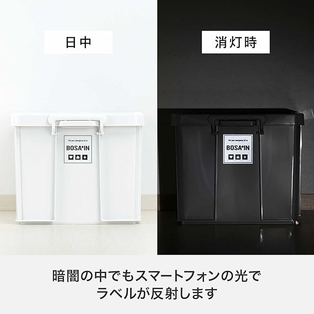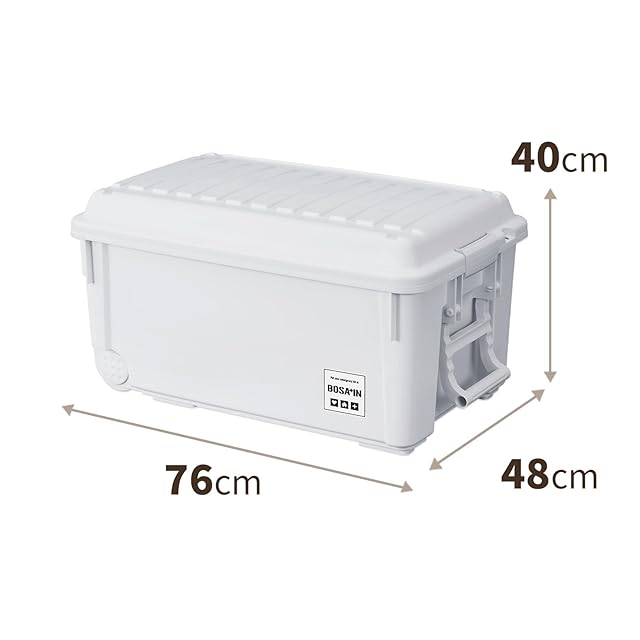 天馬 日常に馴染むキャスター付き防災用品収納ボックス BOSA+IN ベランダキャスターボックス 暗闇でも場所がわかる収納ケース ハンドル付き 防災キット 備蓄 非常食収納 日本製【サイズ 幅76×奥行48×高さ40cm】