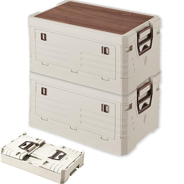 【大容量折りたたみ収納ボックス】2個-47.5*29.5*23.5cm-32L-木製天板。あらゆる種類の衣類、おもちゃ、道具、キャンプ用具、飲み物、スナック、本などを収納することができます。素早く折りたたむことができ、自由に重ねることができます。