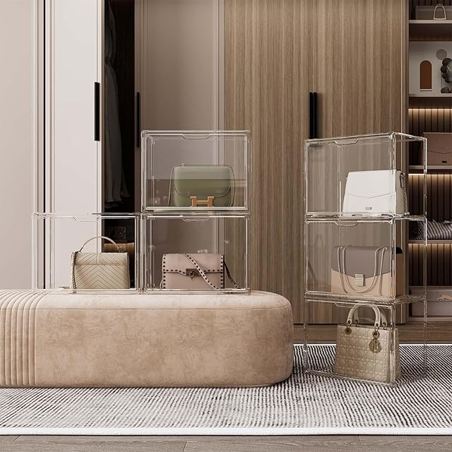 共馳収納 透明の収納ケース3つ 積み重ね式 プラスチックのマグネット式 前開き おもちゃ・かばん・財布・靴・書類の収納ボックス・ディスプレイ用 約36cm(幅)x22cm(奥行き)×28cm(高さ)