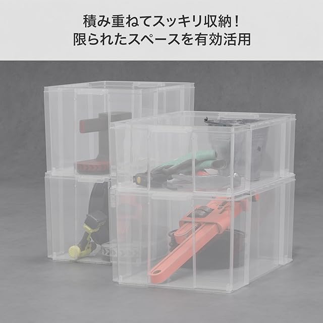 天馬 収納ボックス コンテナ クリア フタなし ロックスBOX 440L 幅29×奥行43×高さ30.5cm 頑丈 収納ケース 防災 積み重ね