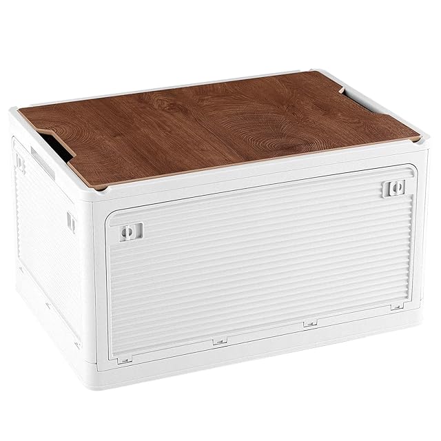X XUNTAO【収納ボックス 折り畳み】収納ケース 木製の蓋付き 全方向から取り出せる 積み重ね キャスター付き アウトドア 折りたたみコンテナ ボックス 大型 キャンプ コンテナボックス 組立簡単 多機能 厚み 強い耐荷重 大容量 家庭用 オフィス用 車用 寝室 衣装ケース おしゃれ(幅51.5cm*奥行き36cm*高さ30cm ホワイト 単品)