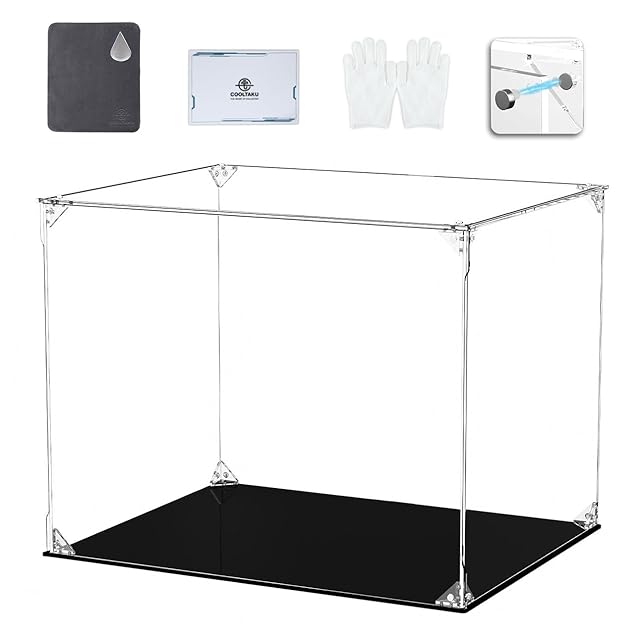 COOLTAKU フィギュアケース UVカット アクリル マグネット式 磁石付き前扉 コレクションケース より堅固 組み立て式 アクリルケース ディスプレイケース 防汚れ 手袋 クリーニング クロス付き フィギュア収納 (幅40×奥行25×高さ30cm, 台座黒)