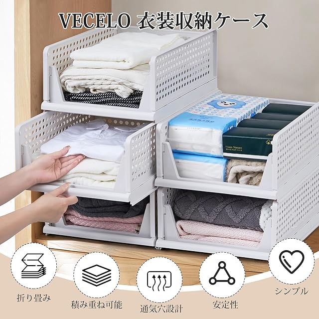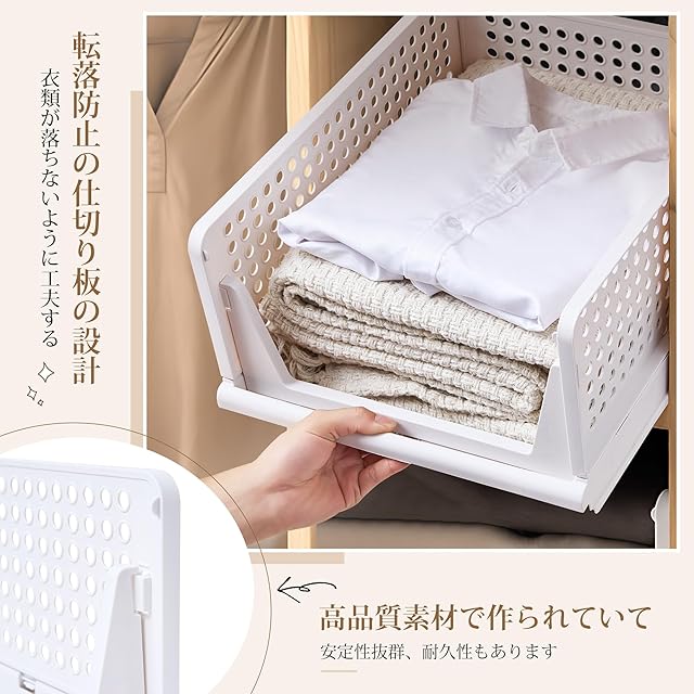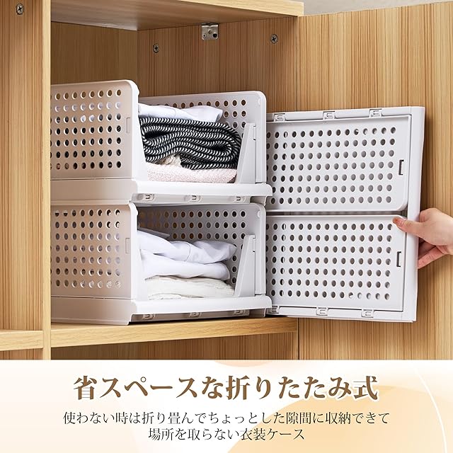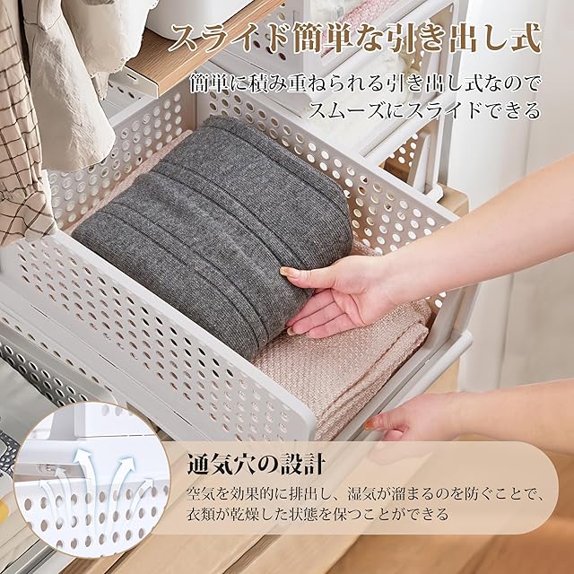 【通気性・中身確認可】半開の設計で、収納ボックスの中身が一目で確認でき、納した衣類を探しやすくて、使い勝手が良いです。通気穴の設計で、空気を効果的に排出し、湿気が溜まるのを防ぐことで、衣類が乾燥した状態を保つことができ、湿気による傷みやカビの発生を防ぎます。
