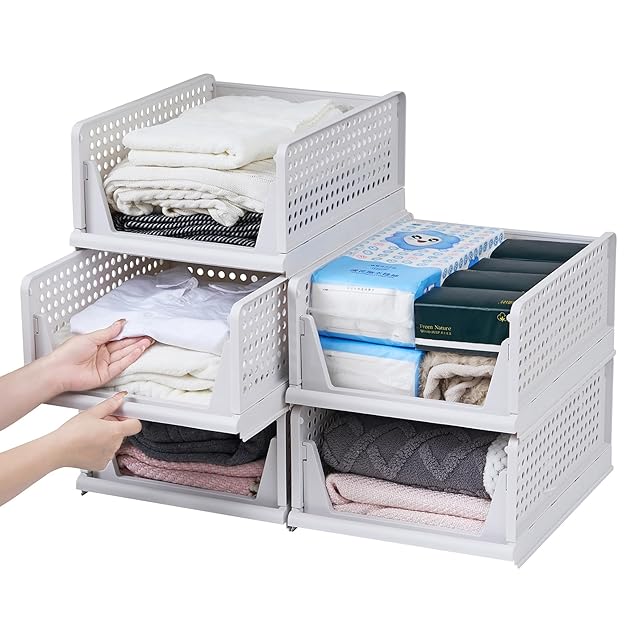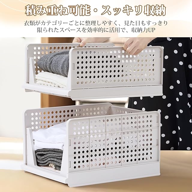 【スッキリ収納】重ねて収納することで、衣類がカテゴリーごとに整理しやすく、見た目もすっきりします。限られたスペースを効率的に活用で、収納力が増して、特にクローゼットや収納棚に最適です。