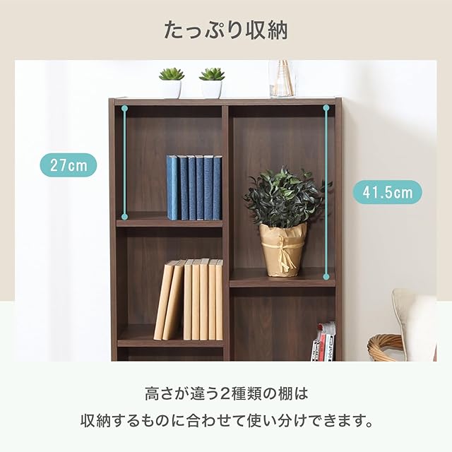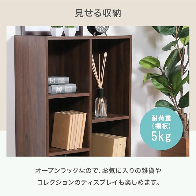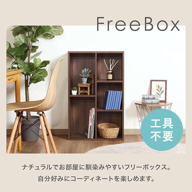 書籍や小物だけでなくA4サイズのファイルや雑誌なども入るフリーボックス。シックな色味と木目調のデザインでどんなお部屋にも馴染みます。