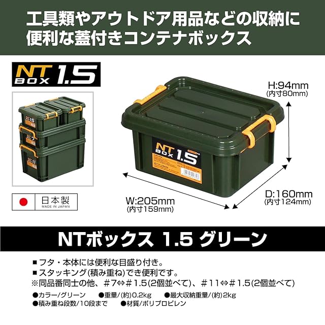 color:2)NTボックス グリーン (積み重ね自由) pattern:#1.5[12個セット]: