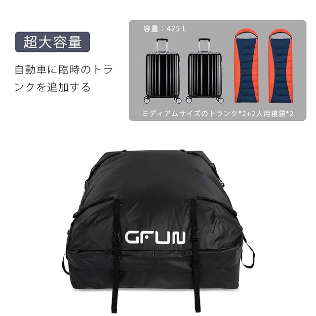 ★【あなたが得る物】—————— ✿ルーフトップカーゴバッグ ×1—————— ✿日本語-英語取扱説明書 ×1—————— ✿425L超大スペース—————— ご不明な点などございましたら、何なりとお申し付けください。さらに、GFUNは1年間のアフターサービスを提供いたしますので、安心してご購入頂けます。万一不具合が生じたら、いつでもお気軽にお問い合わせください。
