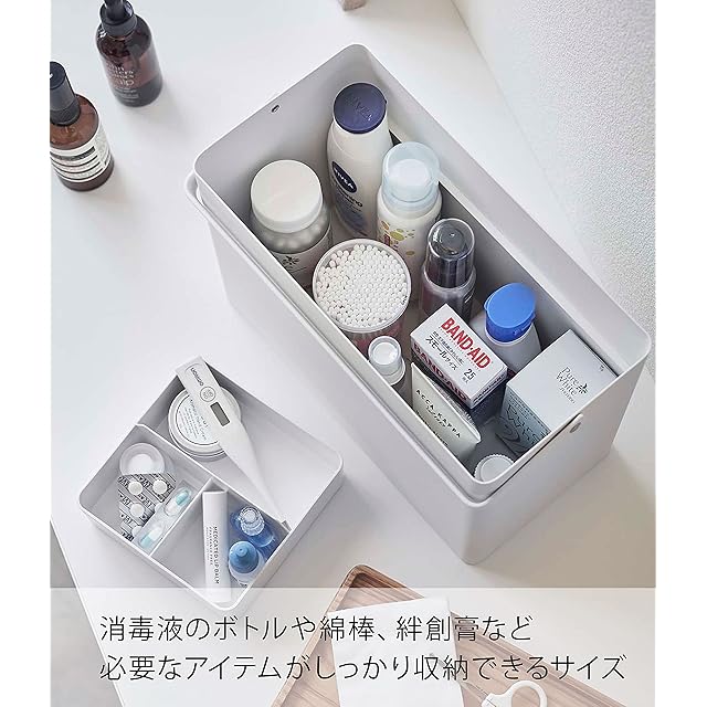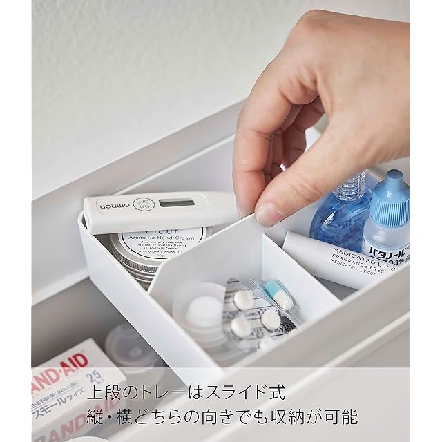 山崎実業(Yamazaki) 救急箱 ホワイト 約W27XD14XH20cm タワー 可動式トレー 取っ手付き 5288