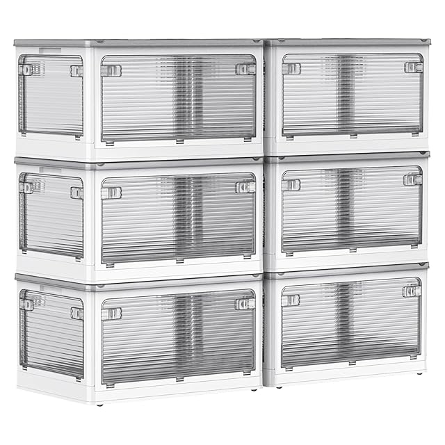 AZMKOO 収納ボックス 折り畳み 蓋付き 全方向から取り出せる キャスター付き 折り畳み コンテナ ボックス 衣装ケース 押し入れ 収納ケース おもちゃ 小物 洋服 布団 本 漫画 収納箱 収納用品 家庭用 オフィス用 車用 おしゃれ 組立簡単 大容量 防塵 防カビ 防湿 無臭 厚み 強い耐荷重 (Lサイズ6個:51.5*36.5*30cm)