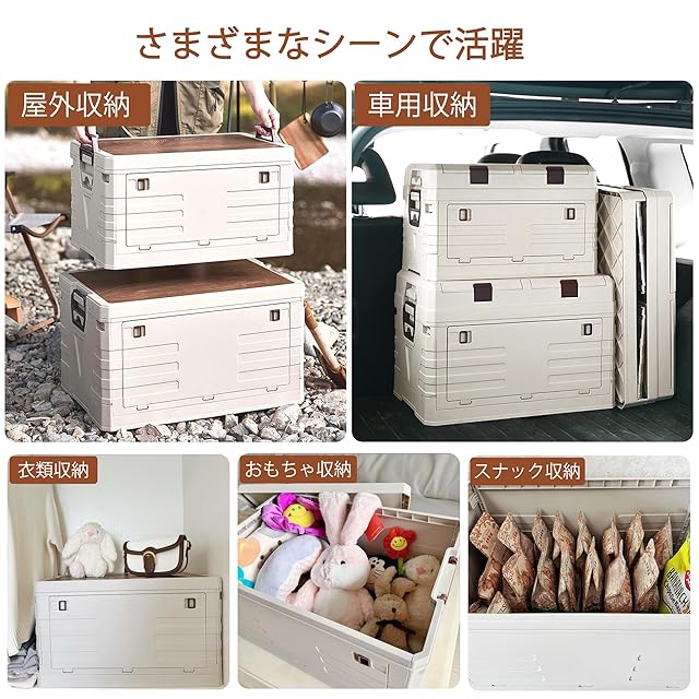 【大容量折りたたみ収納ボックス】2個-58*39*33cm-74L-木製天板。あらゆる種類の衣類、おもちゃ、道具、キャンプ用具、飲み物、スナック、本などを収納することができます。素早く折りたたむことができ、自由に重ねることができます。