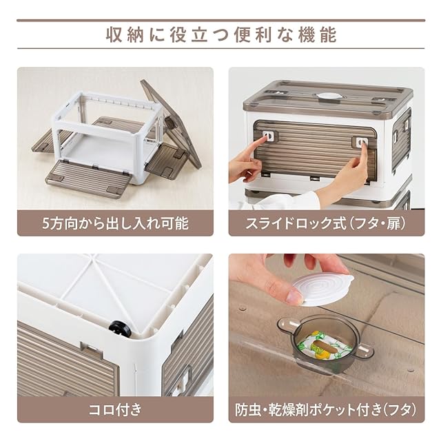 【防虫/乾燥剤ポケット付き】フタには防虫剤・乾燥剤を入れるポケットが付いているので、衣類収納に適しています。<br>【中身が見やすいクリアタイプ】フタ面・側面がクリアなので、収納物が一目で分かり、探す時間がかかりません。
