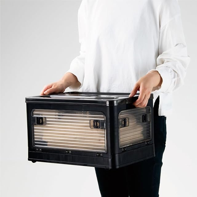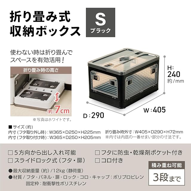 折りたたみ式収納ボックス Sサイズ ブラック 蓋付き 積み重ね 全方向から取り出せる 収納ケース 収納 折り畳み コンテナ ボックス プラスチック キャスター付き 組立簡単 [W40.5㎝xD29㎝xH24㎝]3個セット