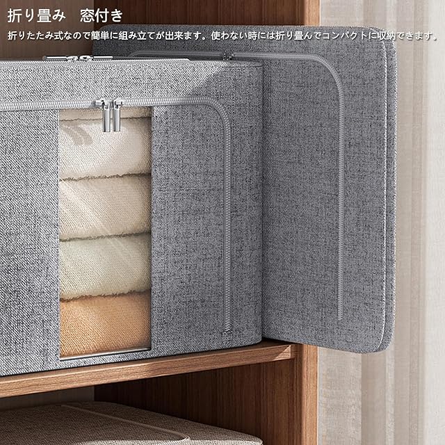 ✅【可視化窓、持ち手が付き、折り畳み】透明窓も付きますので、収納ボックスの中身をよりわかりやすいです。物探しもしやすくなります。ボックスの両側はハンドルが付いておりますので、持ち運びや出し入れなどにとても便利です。押し入れの中、クローゼットの上やベットの下にらくらく持ち運べます。収納ケースの側面に大きめな透明窓があり収納ケースを開けずに中身が確認できます。収納バスケットは折りたたみ式ので、使わない時は簡単に折り畳んで保管できます。あまりスペースをとりません。