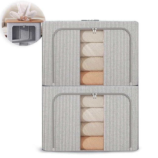 ✅【大容量&多用途】大容量の66L 2個組の布製収納ケースを使用することで、押し入れ、クローゼット、お部屋やオフィスをすっきり整理できます。衣類、書類、おもちゃやその他の生活用品と事務用品など用途別にたっぷり収納できます。