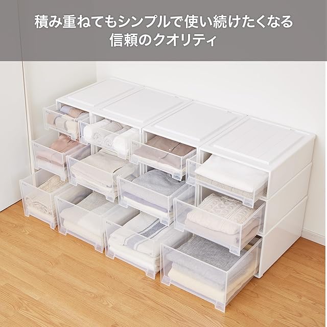 【通販限定2個セット】天馬 収納ボックス フィッツケース クローゼット 幅30×奥行53×高さ30cm 収納ケース たわみにくい 衣装ケース 日本製 再生材配合 サステナブル 【色 ホワイトクリア】 【53-30L】