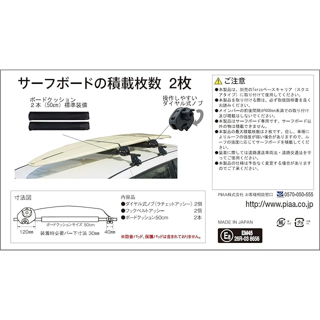 Terzo テルッツォ (by PIAA) サーフボードキャリア 2枚積み 積載用キット ブラック ボードクッション付 EM45