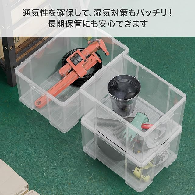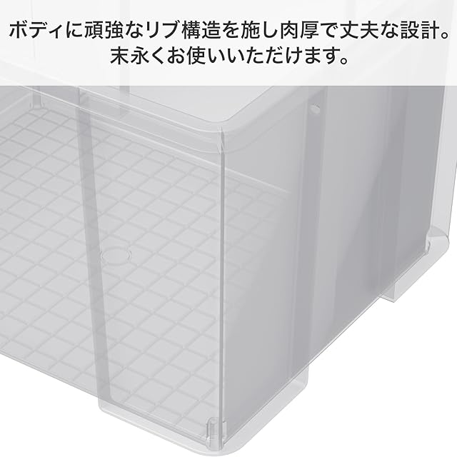 耐久性に優れた頑丈な収納ケースで、肉厚のボディ設計と頑強なリブ構造がポイント。中身が一目で分かるクリアタイプ。クローゼットの収納におすすめ。