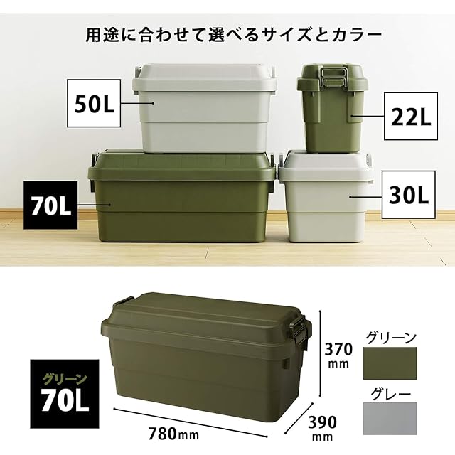 リス(RISU) 収納ボックス トランクカーゴ 70L グリーン 日本製 TC-70 2個セット コンテナ ボックス 屋外収納 キャンプ 防水 GHON072