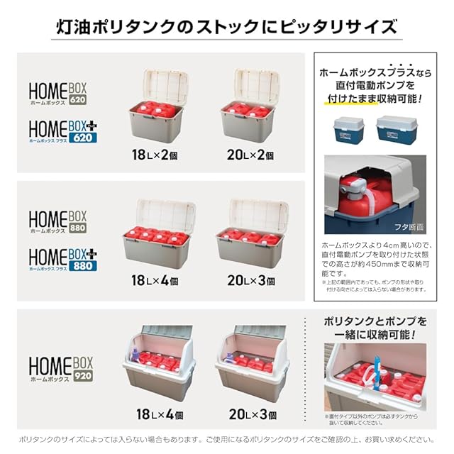 《灯油ポリタンク収納可能個数》 18Lなら4個、20Lなら3個