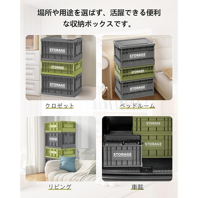 ✅【多彩なカラーバリエーション&サイズ展開】アウトドアに映えるオリーブグリーン、室内に調和するライトグレー・ダークグレー、明るく柔らかな印象のクリームホワイト。インテリアや用途に合わせて選べる豊富なカラーバリエーションをご用意。さらに8種類のサイズ展開で、家庭収納・キャンプ・車載など多様なニーズに対応します