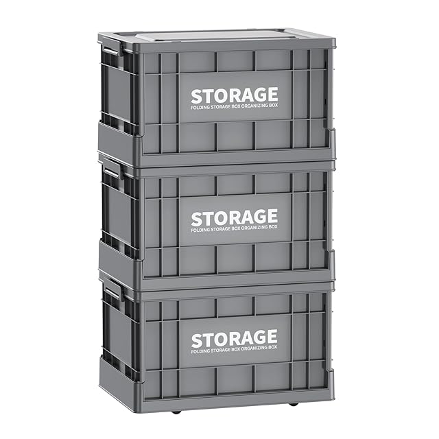 収納ボックス 折りたたみ式 大容量 コンテナボックス 蓋付き キャスター付き おしゃれ プラスチックケース クローゼット 押入れ 衣類 おもちゃ 布団 書類 漫画収納 アウトドア キャンプ用(Lサイズ3個:52*37.5*30cm,58L)