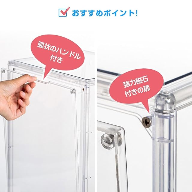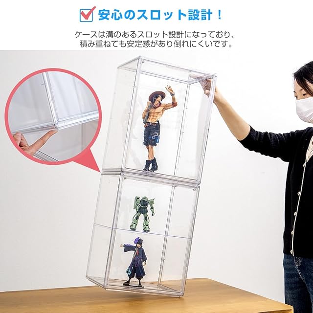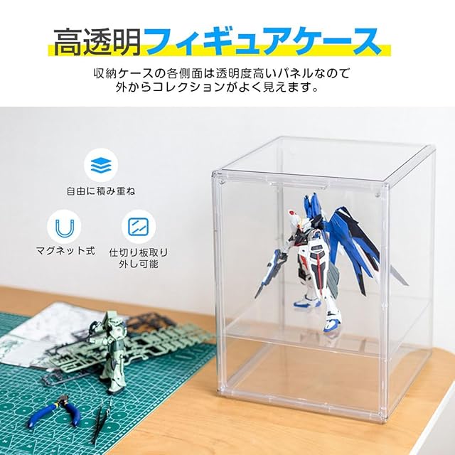 八番屋 フィギュアケース 収納 透明展示ケース マグネット式扉 コレクションケース 積み重ね可能 幅29.2×奥25×高さ40cm クリア 一つ