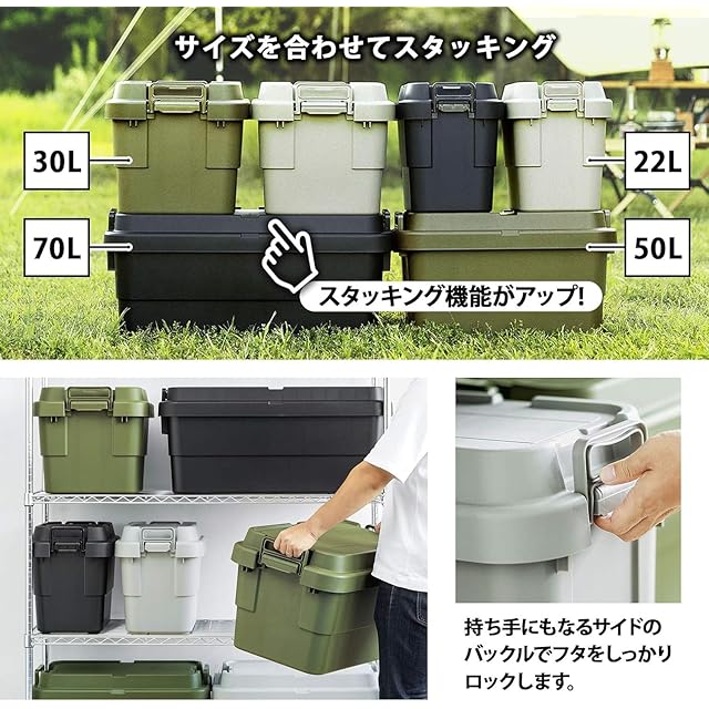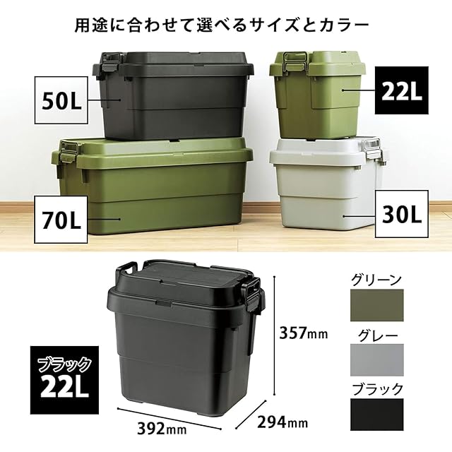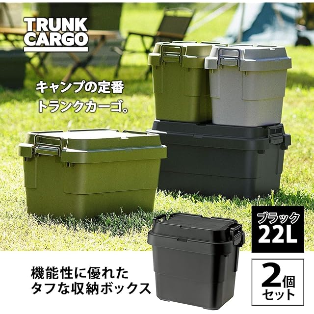 リス(RISU) 収納ボックス トランクカーゴ22L ブラック 日本製 TC-20S 2個セット コンテナ ボックス スタッキング 屋外収納 キャンプ 防水 GHON102