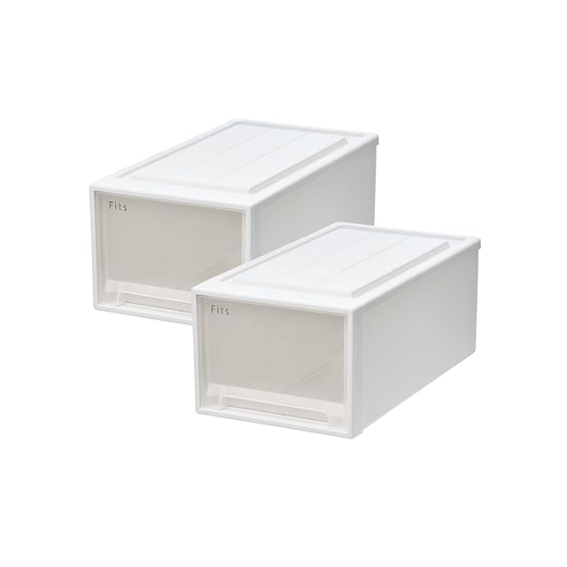 【通販限定2個セット】天馬 収納ボックス フィッツケース クローゼット 幅30×奥行53×高さ23cm 収納ケース たわみにくい 衣装ケース 日本製 再生材配合 サステナブル 【色 ホワイトクリア】 【53-30M】