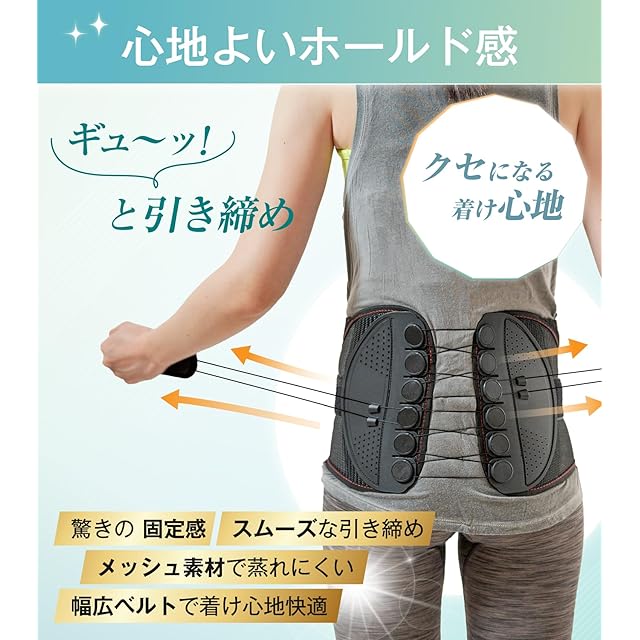 ✅【締め具合調整も簡単】弱い力でもしっかり締められる構造で身体にフィット。力がいらないため、女性やご年配の方でも手軽に装着できます。