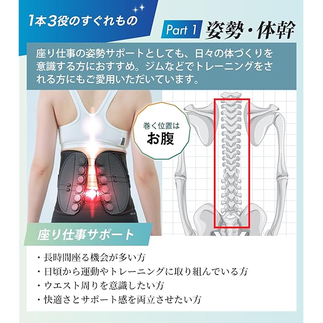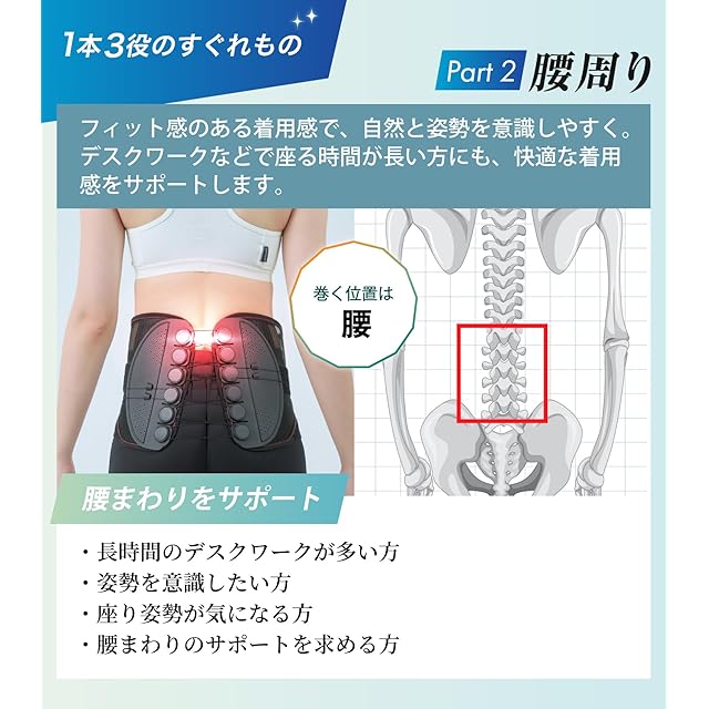 ✅【用途に応じて幅広く活躍】腰まわりを支える多機能設計。デスクワーク、立ち仕事、運転、スポーツ、日常生活など、様々なシーンで活躍。軽くて扱いやすく、産後や高齢の方にもおすすめの仕様です。
