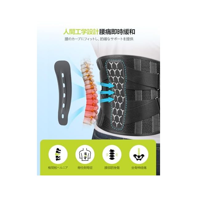 【腰の不安をしっかりサポート】 Rakiie 腰サポーターは、腰痛・椎間板ヘルニア・坐骨神経痛・長時間作業による腰の負担を軽減。日常生活や立ち仕事、運転、家事など、幅広いシーンで腰を安定サポートします。