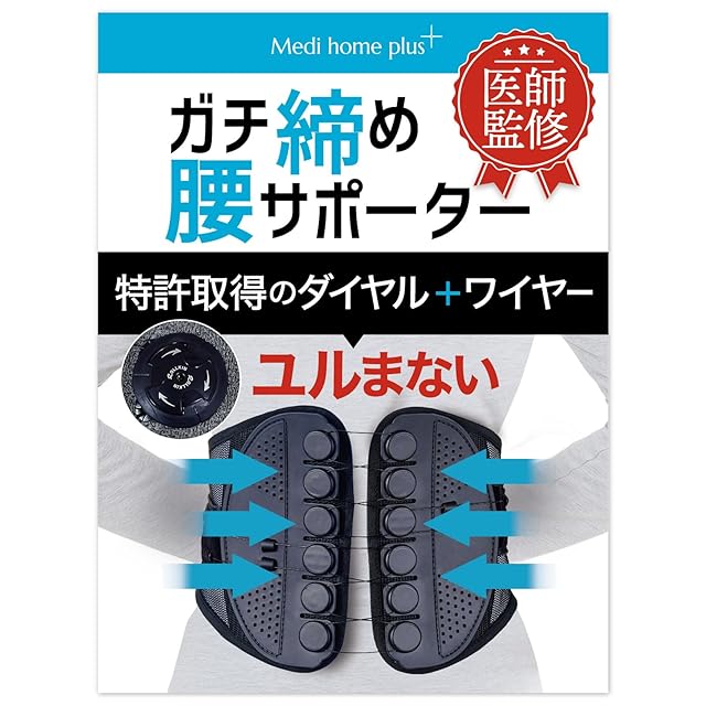 【医師監修】腰サポーター ガチ締め ダイヤル式 腰ベルト 背筋 腰椎 高耐久ワイヤー メディホームプラス (XL)