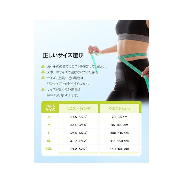 【サイズの選び方】 S:70–85cm、M:85–100cm、L:100–115cm、XL:115–130cm、XXL:130–160cm。ご注意:おへその位置でウエストを計測してください。腰コルセットのサイズ選びに迷った場合は、1サイズ上がおすすめです。装着前には腰ベルト両側の加圧ベルトを必ず緩めてから着用してください。しっかりと引き伸ばすことができ、サポート力も高まります。薄型設計で衣服の下でも目立ちにくく、日常生活に自然に溶け込みます。万が一、異なるサイズの商品が届いた場合は、遠慮なく当店までご連絡ください。迅速に交換対応いたします。