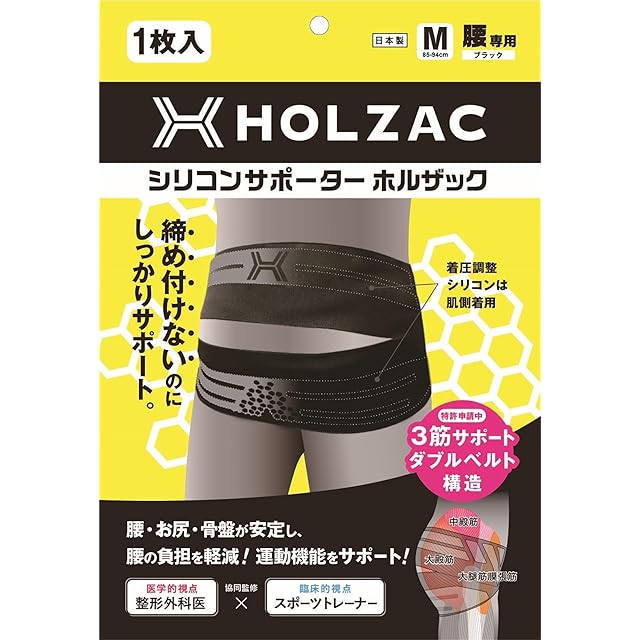 腰サポーター HOLZAC ホルザック シリコン テーピング 整形外科医監修 スポーツトレーナー監修 固定 薄型 腰痛 骨盤 姿勢 ベルト 男女兼用 日常生活 スポーツ (ブラック, M)