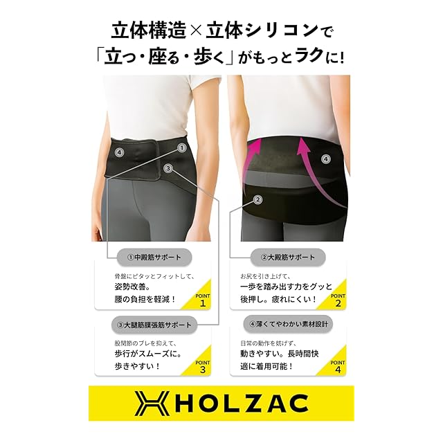 ✅特徴① 中殿筋サポート:姿勢が良くなり、腰の負担を軽減。
