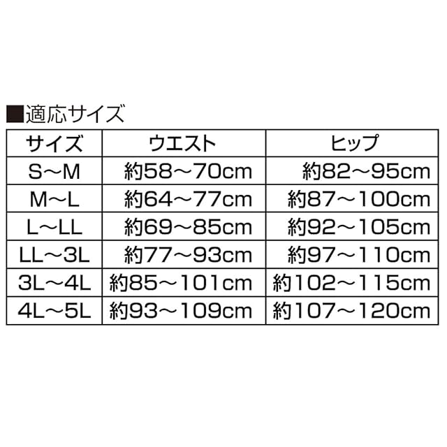 商品サイズ (幅×奥行×高さ) :適応サイズ:ウエスト58~70、ヒップ82~95(cm)