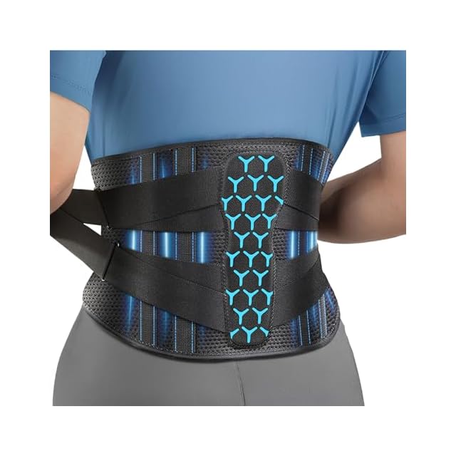 Rakiie 腰 サポーター 男女兼用 7本安定サポート 取り外し3D腰パッド 強力固定 快適フィット 圧力調整可能 着脱簡単 蒸れにくいメッシュ素材 腰椎サポート 腰ベルト 腰痛 コルセット 姿勢サポート 日常生活 仕事 スポーツ 家事 運転 坐骨神経痛 椎間板ヘルニアの緩和に最適 腰の負担軽減 ブルー サイズ S (ウエスト: 70-85CM)