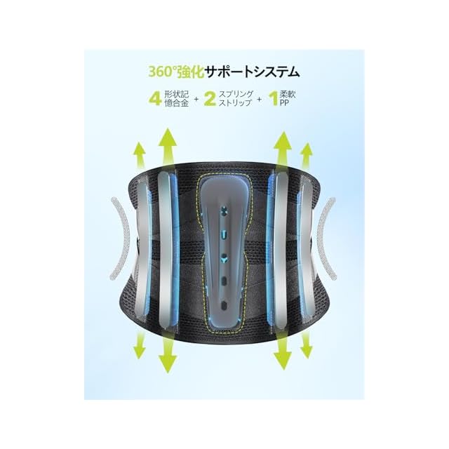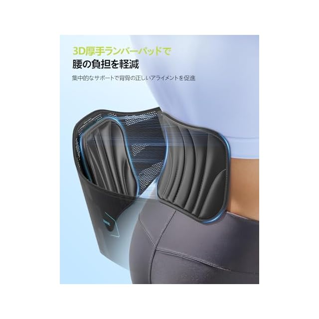 【7本安定サポート構造×取り外し可能パッドで強力固定】 腰ベルトは1本のPPボーン+4本の形状記憶合金+2本のスプリングを組み合わせた7本の強力サポート構造。さらに他にはない着脱式腰パッドで圧力を分散し、必要に応じて快適さと固定力を両立。長時間の装着も快適に、腰をしっかり安定させます。