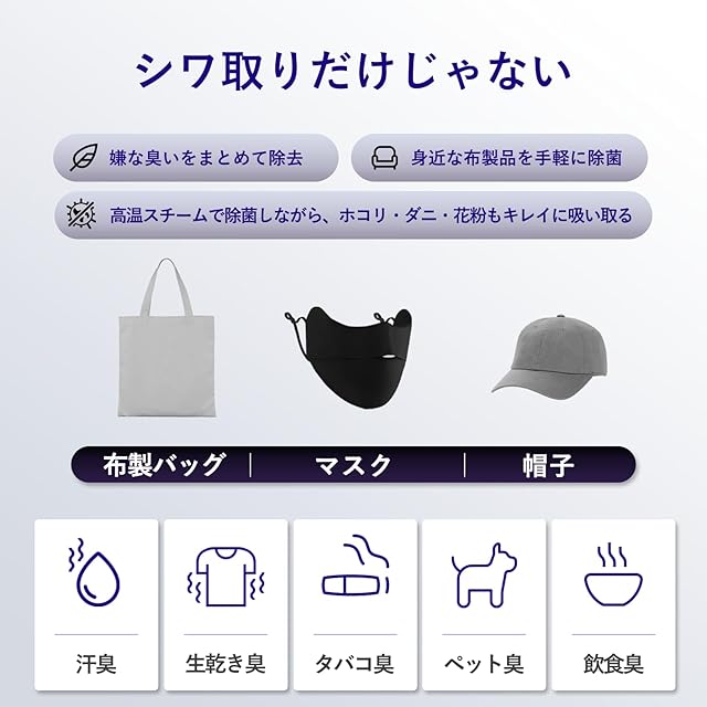 【ピタッと吸いつく】真空吸着式アイロン技術を採用。ハンガーに吊るした状態でも、ピタッと吸い付くように衣類に密着してくれるから、まるでアイロン台の上でかけているかのように、すばやくキレイにシワ伸ばし。