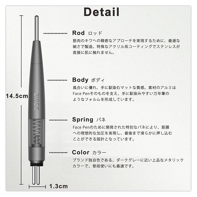 ✅【筋肉への精密なアプローチを実現】 1ミクロン単位での精密な削りを重ねた改良によって、わずか な力の加減も思い通りにコントロールすることが可能です。筋 肉のキワや微細な部分にも正確にアプローチし、1mmの隙も逃 したくないという設計思想を反映しています。ように、手に取るたびに自信を持てる洗練されたデザインを追求しました。プロ仕様の精密技術が、ミクロン単位の緻細な調整を可能にし、長時間使用しても手が疲れにくい設計。