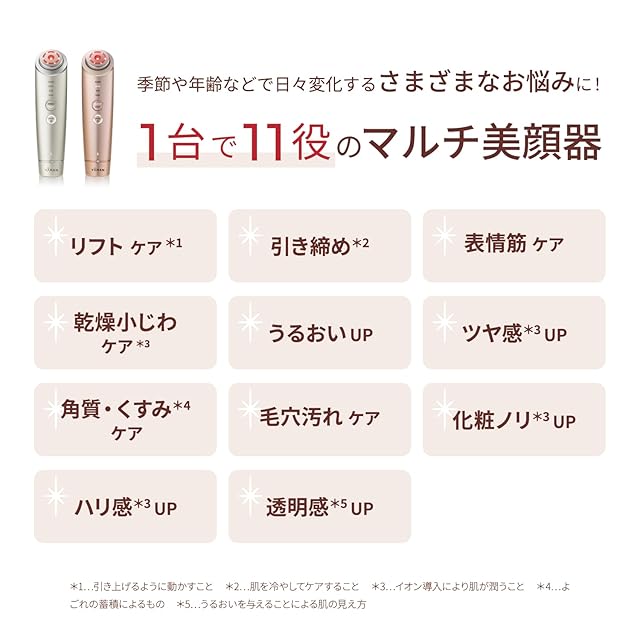 1台で11役、10機能搭載のエステ級*多機能美顔器 *エステサロンのメニューのように多くの機能を搭載していること