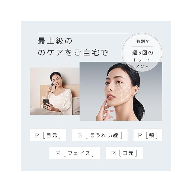 【6種類モード・3段階レベル】本製品は6種類モードがあります。①クリーニングモード:緑色LED+温熱+イオン導入+振動;②浸透/導入モード:赤色LED+温熱+イオン導入+振動+RF;③リフトアップモード:赤色LED+温熱+EMS+振動+RF;④たるみモード:黄色LED+EMS+RF;⑤目元ケアモード:温熱+EMS+振動;⑥冷感モード:青色LED+冷感。6種類モードは多くの人の様々な肌に対応して、別々なスキンケアニーズに満足できます。お客様は、肌の状態やニーズに応じて、モードを選択して使用できます。各モードには3段階レベルが調整できます。レベルを選んでふさわしいケアプランに合わせて肌管理など行います。初めての方は、一番下のレベルから始めることをお勧めします。