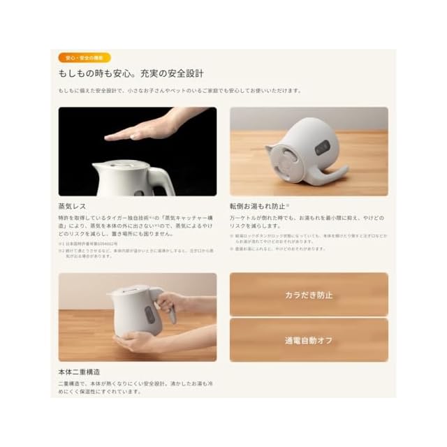 タイガー魔法瓶(TIGER) 電気ケトル 温度調節機能付き 湯沸かし コーヒードリップ 0.8L 転倒お湯漏れ防止 カラだき防止 蒸気レス ベージュ PTV-A080CB